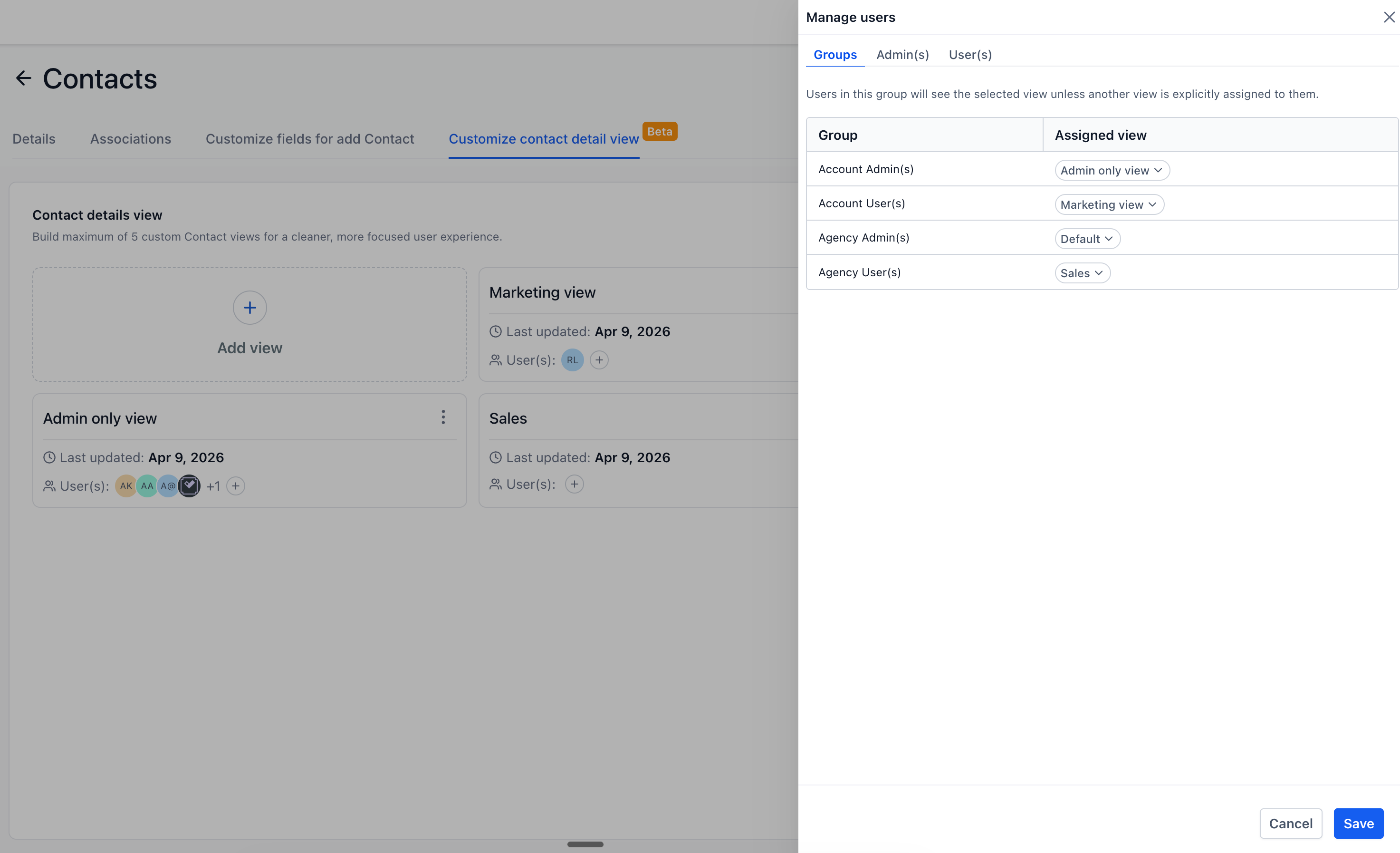 Assign views to specific users or entire groups (Agency Admins, Agency Users, Account Admins, Account Users)