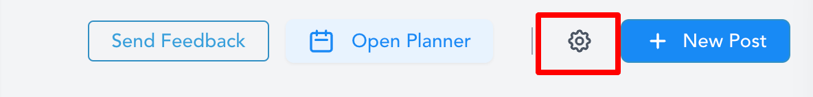 To get started, please go to Social Planner. In the top right corner of Social Planner, there is a Setting option (Gear icon). Please navigate to Settings by clicking it.